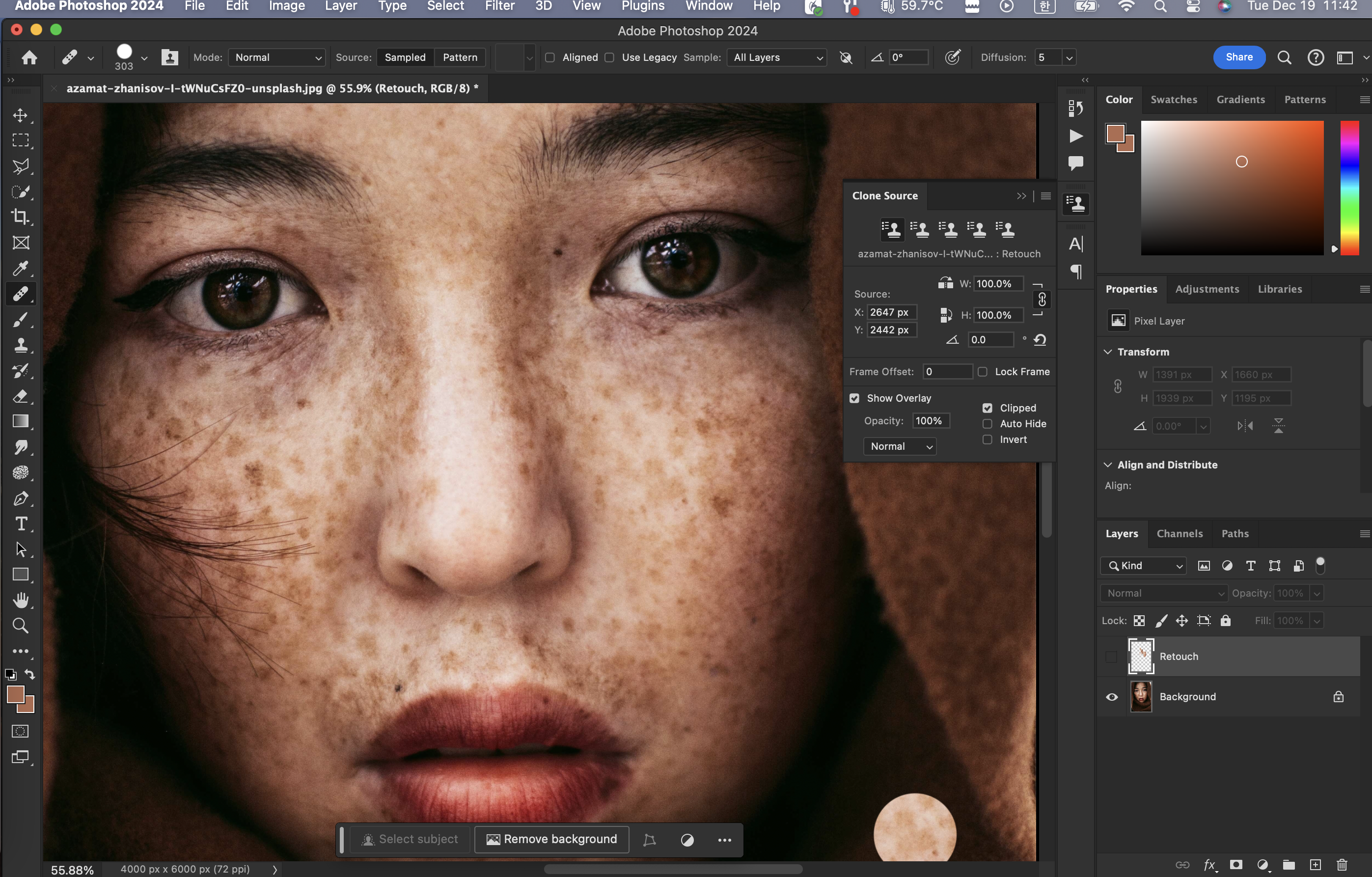 이래야 새 레이어인 Retouch 레이어에서 작업을 할 수 있다.