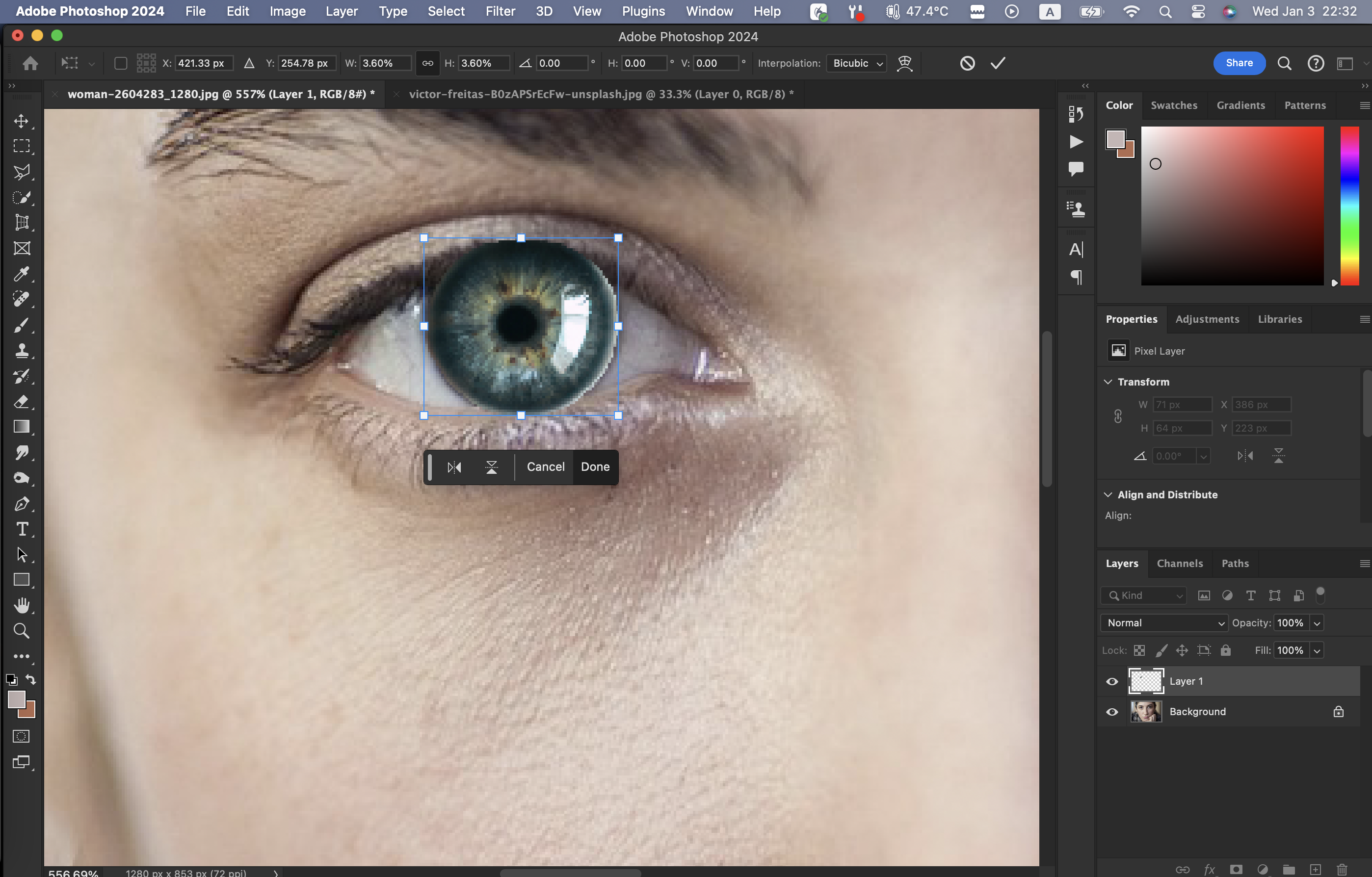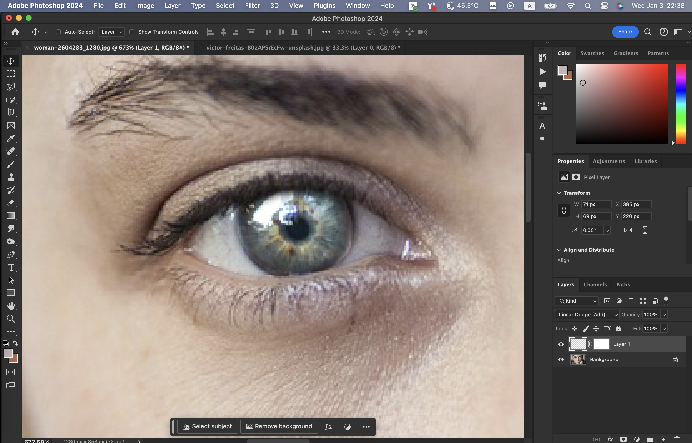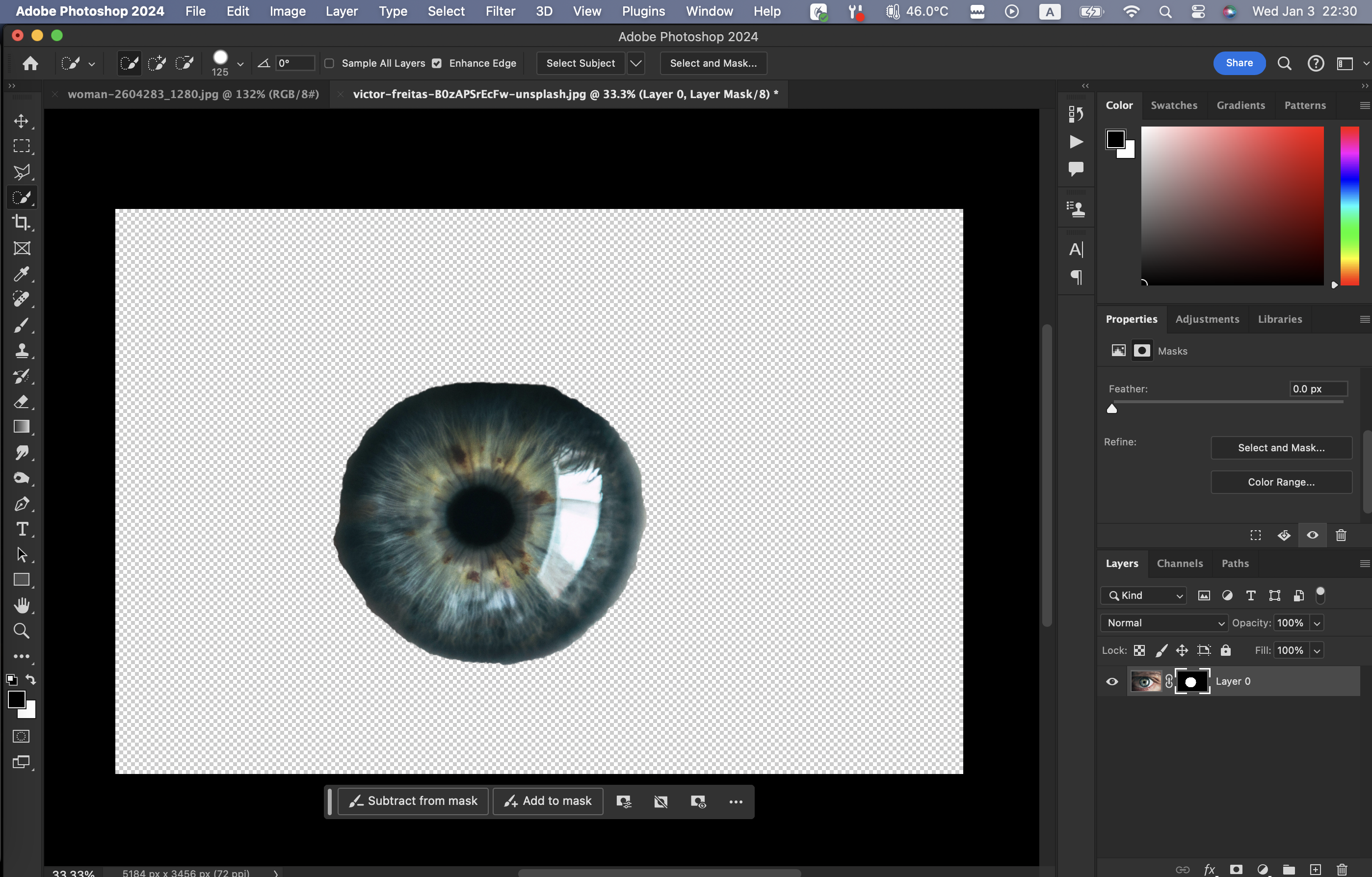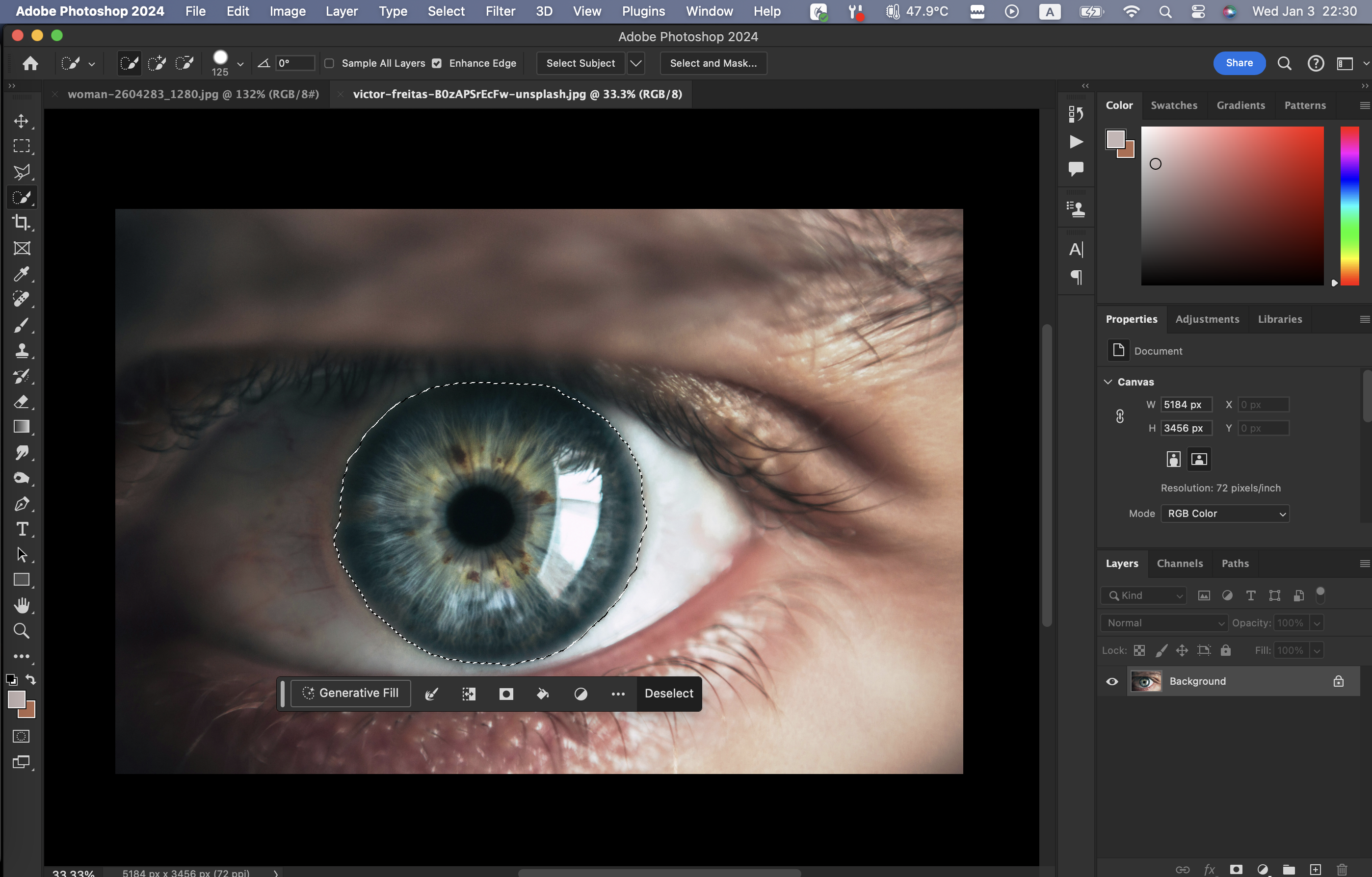 눈 사진에서 흰자를 제외한 것만 Quick Selection Tool로 선택한다.