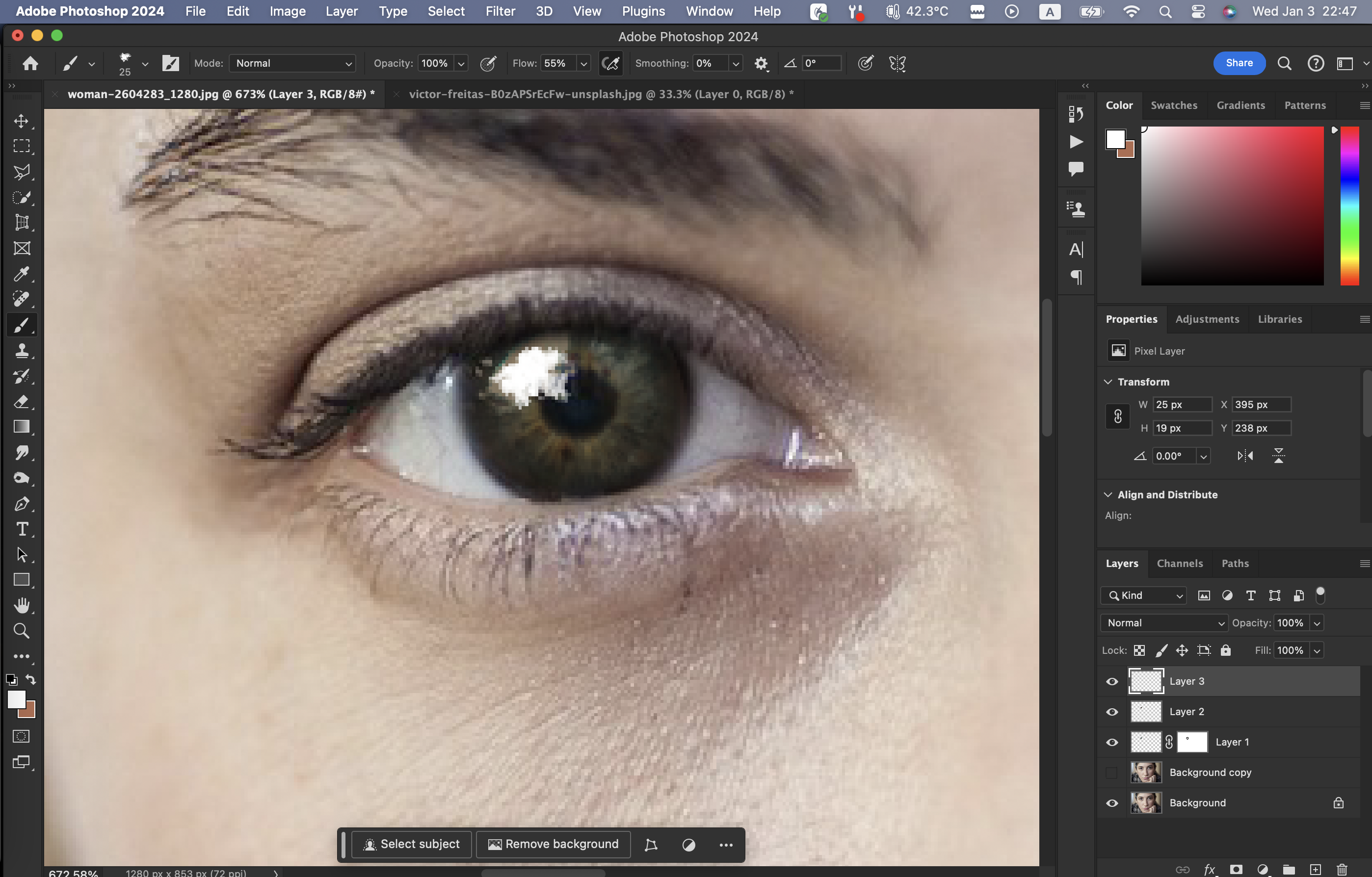 반대쪽 눈도 레이어를 복사하여 붙임으로써 동일한 효과를 내준다.