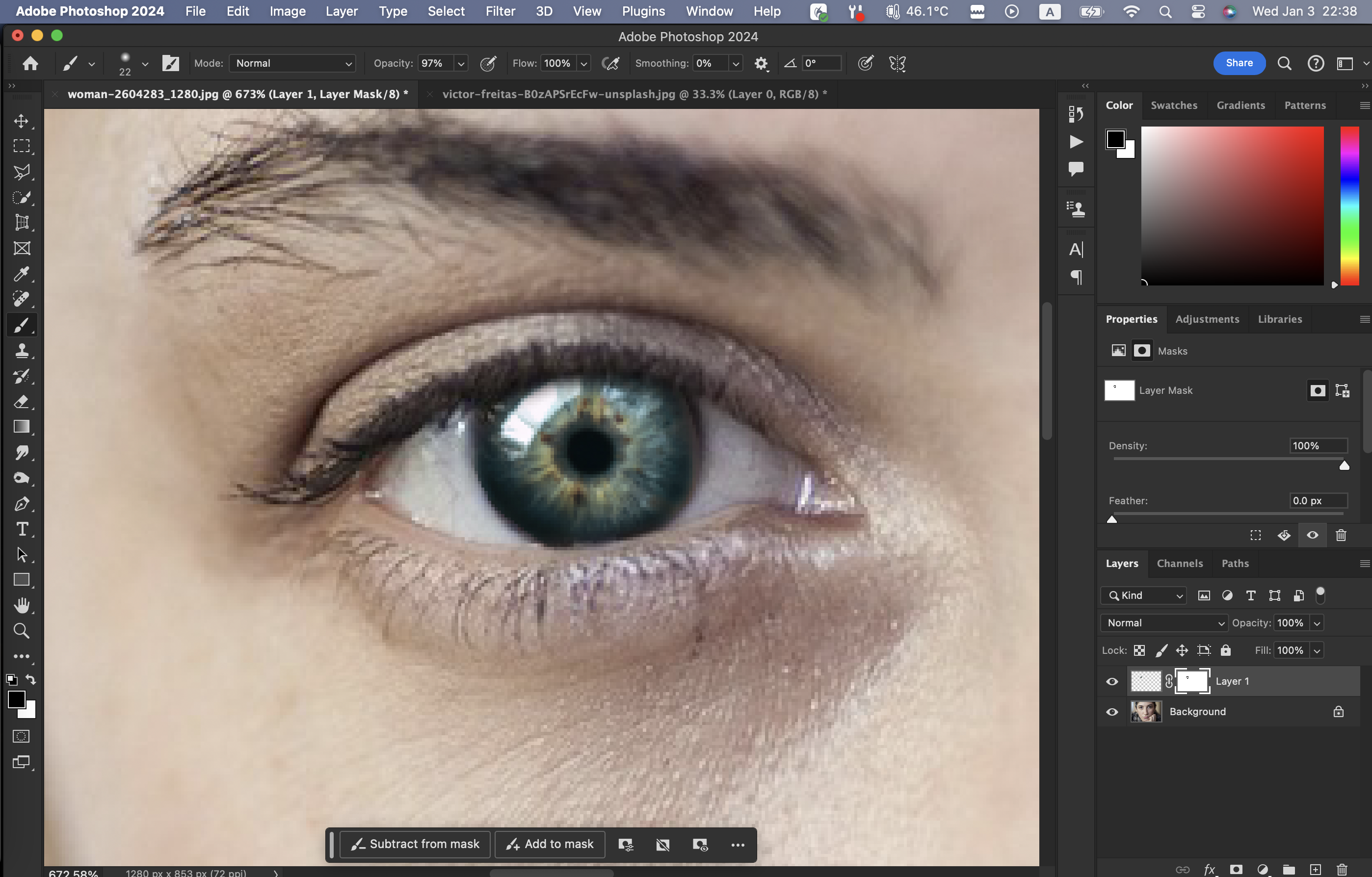 마스킹을 해주고 브러시 도구를 통해서
