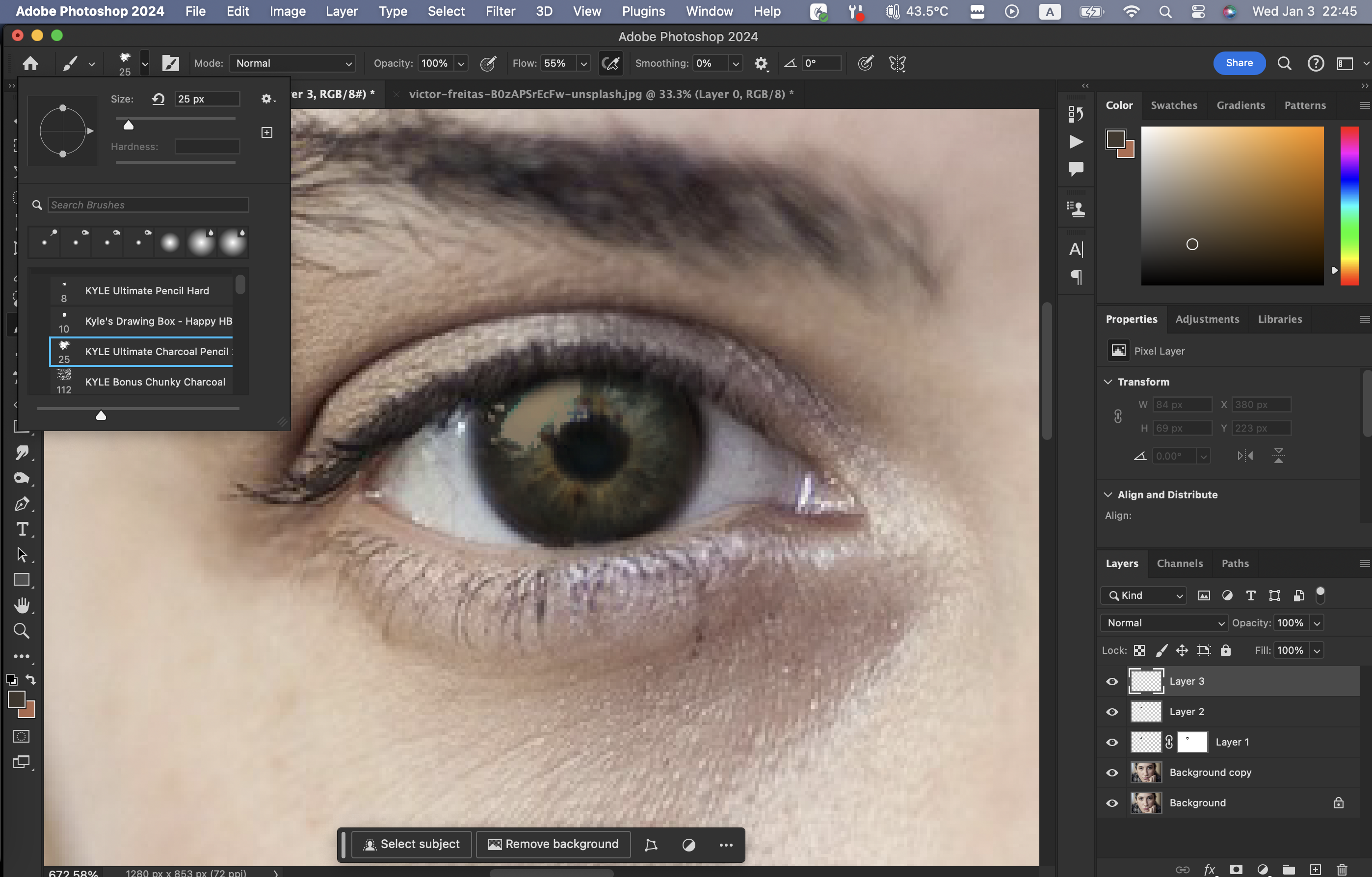 이후에는 눈 중앙 등 어두워야 할 부분을 Burn tool로 더 검게 해준다.