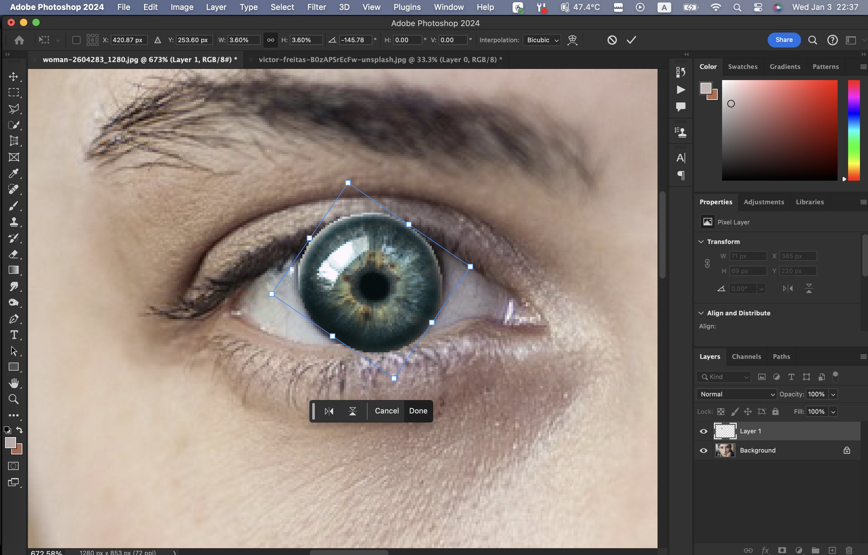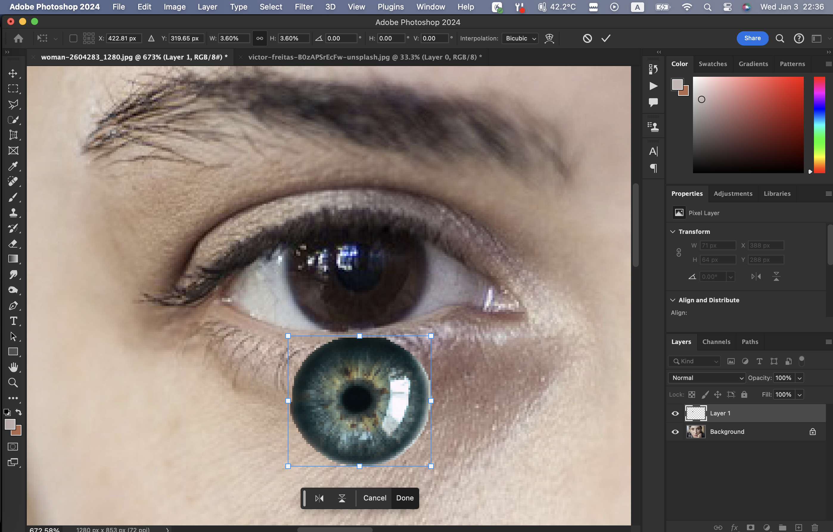 반대쪽 눈도 레이어를 복사하여 붙임으로써 동일한 효과를 내준다.