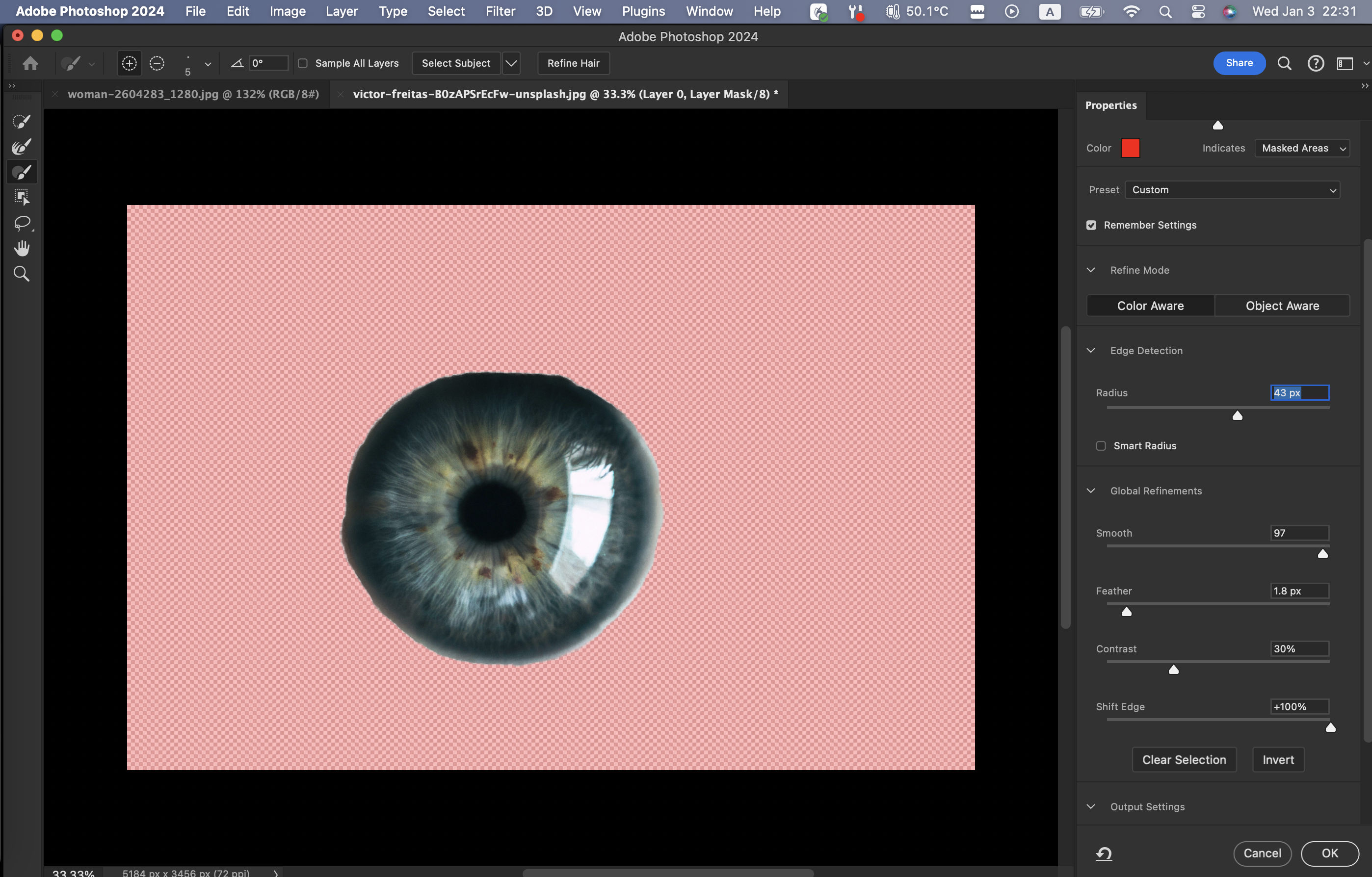 Select and Mask에서 다듬어준다.