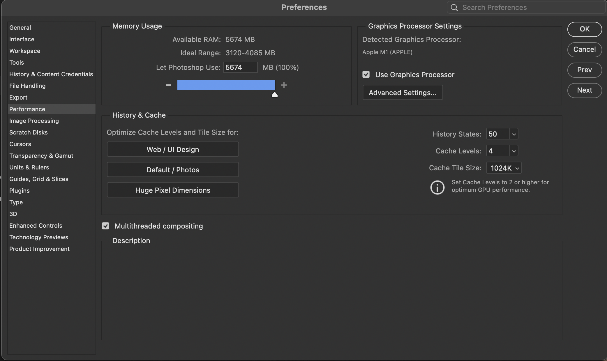 그래서 포토샵-설정-Performance로 들어가서