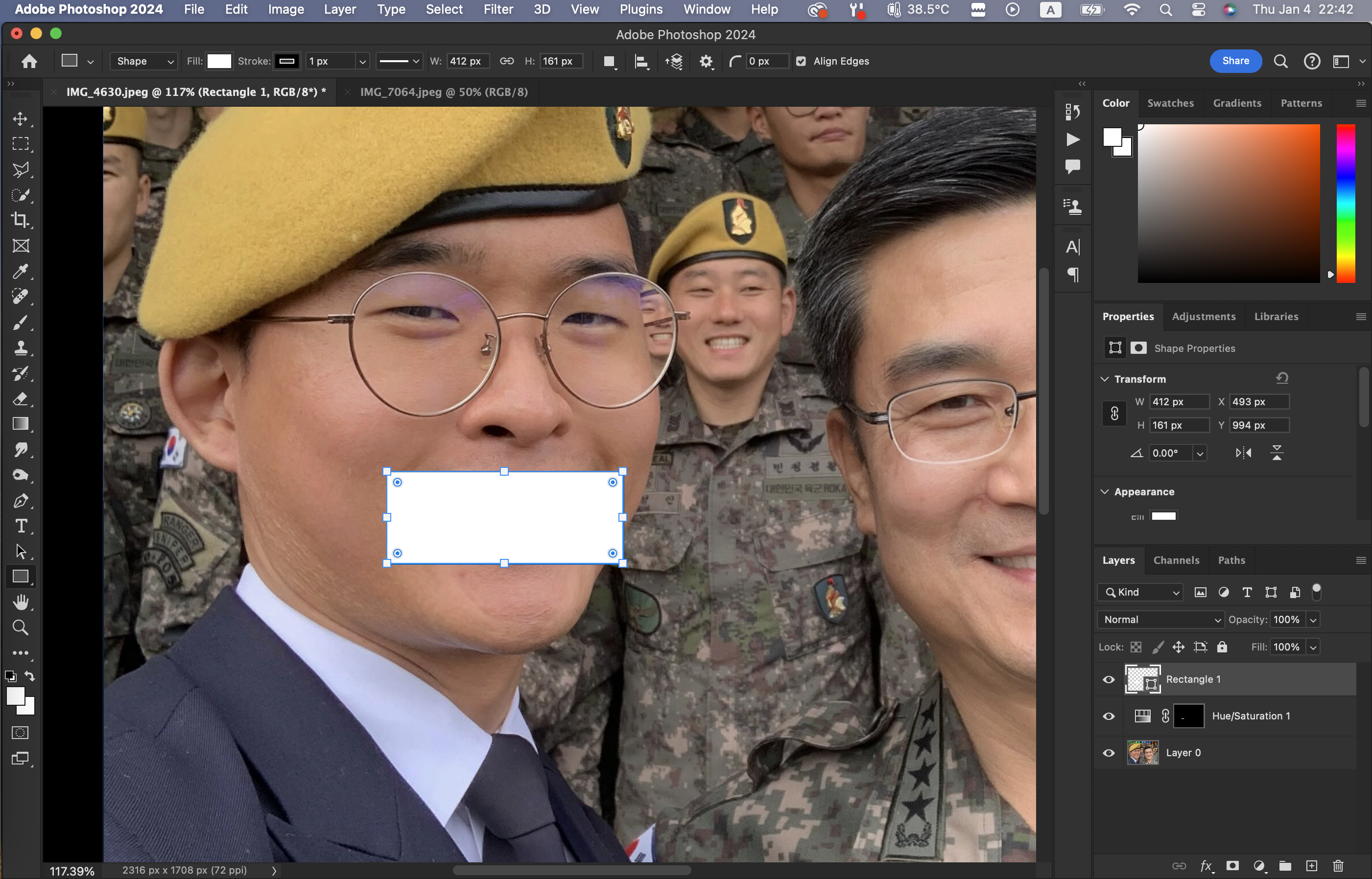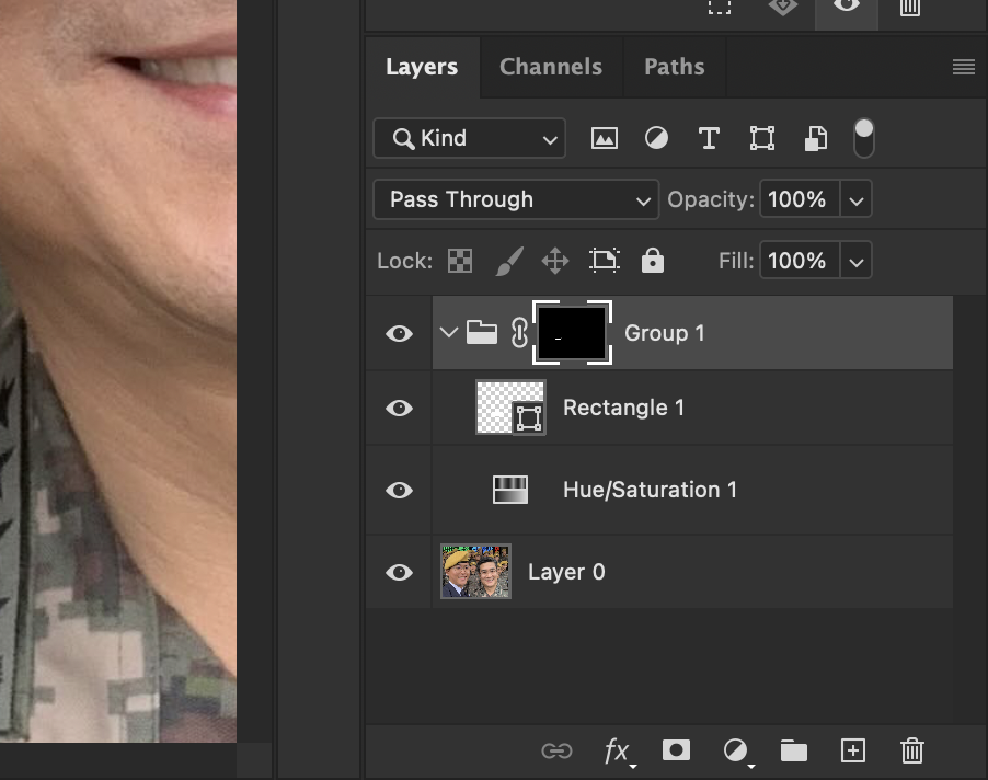 이렇게 하면 치아에 레이어 마스크가 적용 되면서 Hue/Saturation이 치아에만 적용된다.