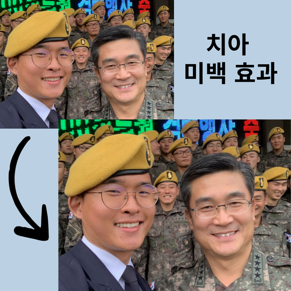 치아에 색칠만 하면 이렇게 치아가 미백 처리된 것을 확인할 수 있다.