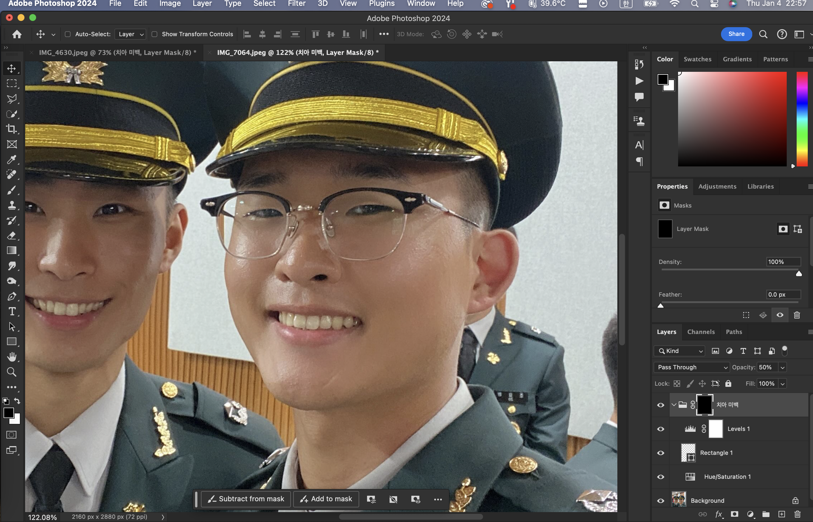 그리고 나서 레이어 마스크를 적용 하면 위와 같이 된다.