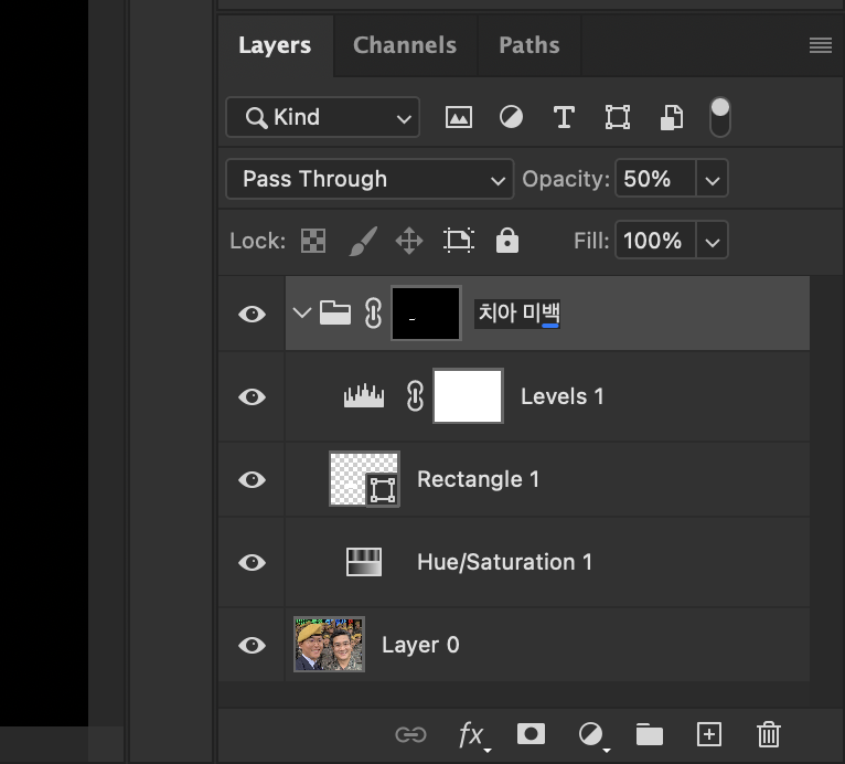 먼저, 치아 미백 폴더의 레이어 마스크를 삭제해준다.