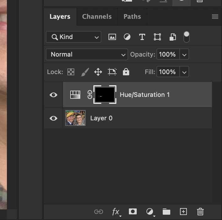 이는 Hue/Saturation 레이어의 검은 부분을 커맨드키(PC컨트롤키)로 누른 상태에서