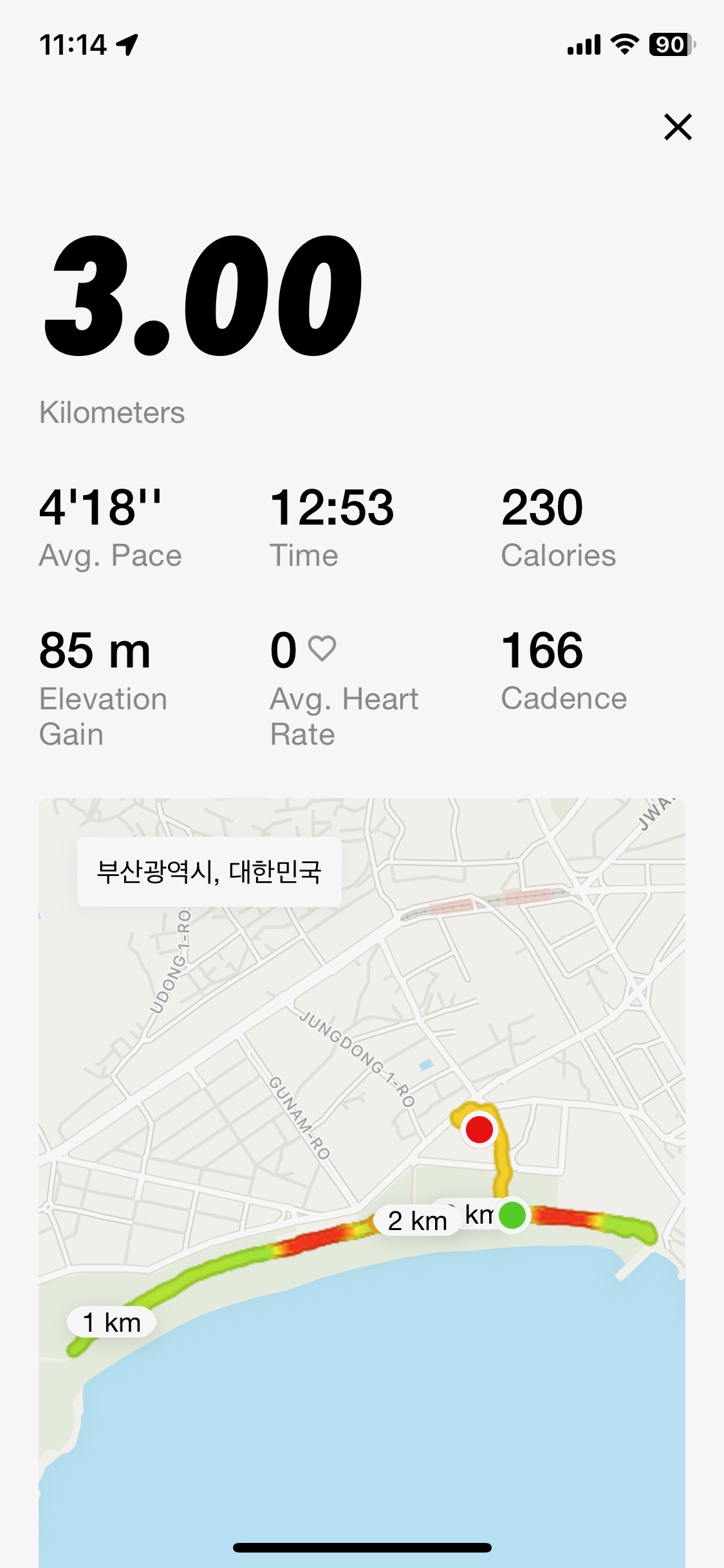 만약에 뛸 생각이라면 해운대하고도 가까우니 해운대에서 뛰는 것을 추천한다.