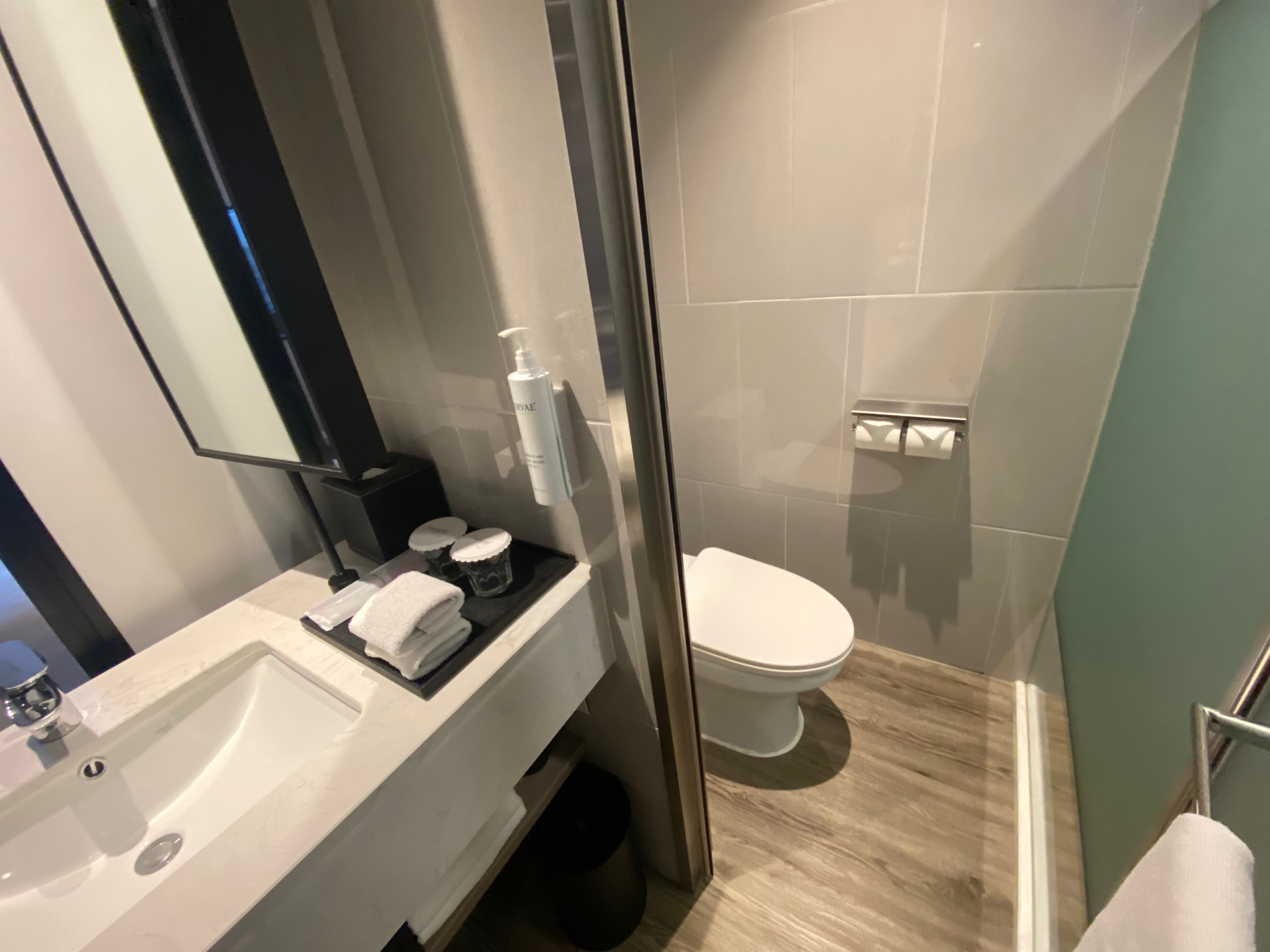 또한, 샤워부스와 화장실이 문을 공유하고 있어서 샤워부스 문을 닫으면 화장실 문은 열려 있는 구조다.