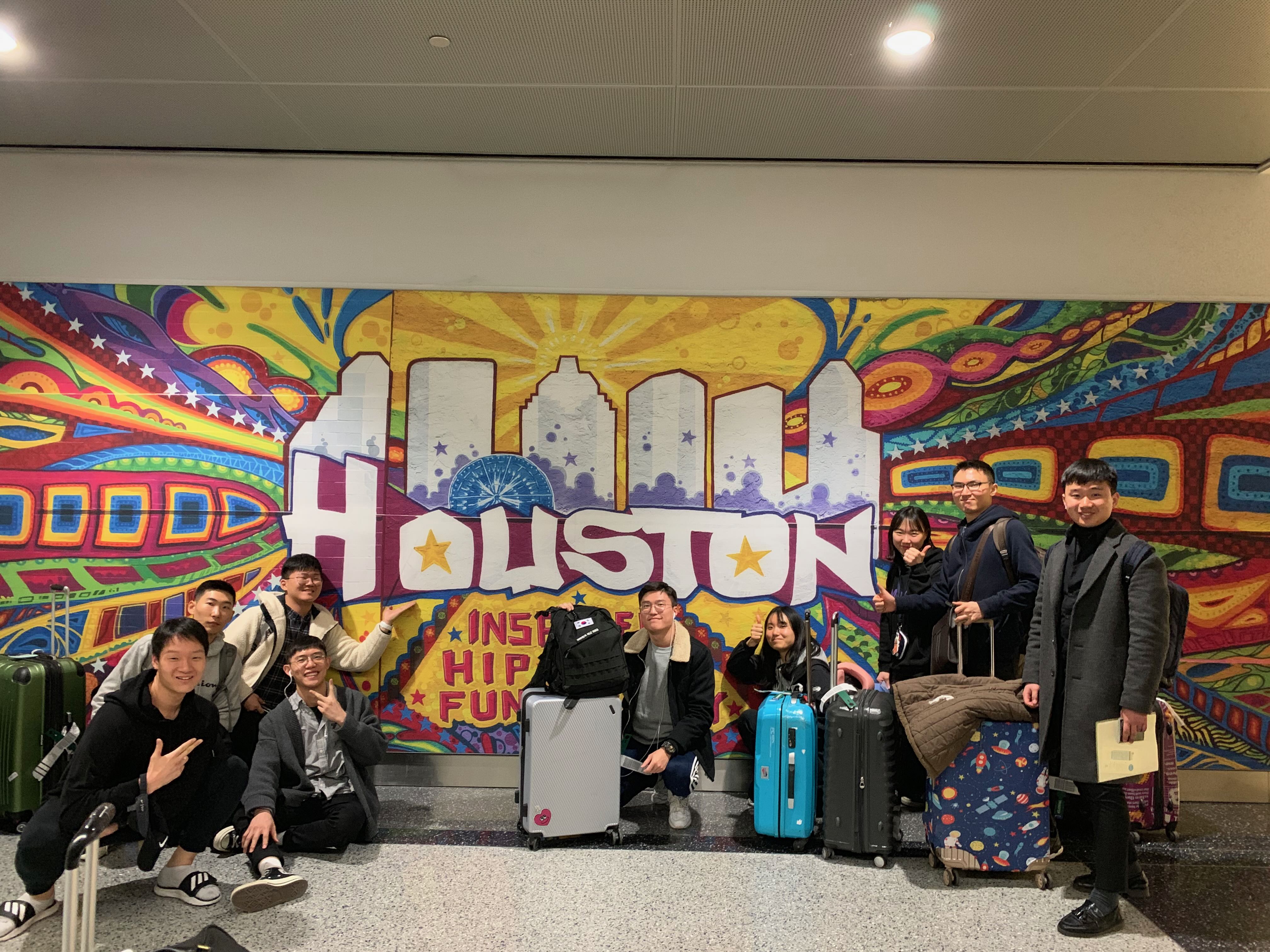 좌: 김포공항에서 단체샷, 우: 휴스턴 공항 도착했을 때
