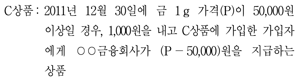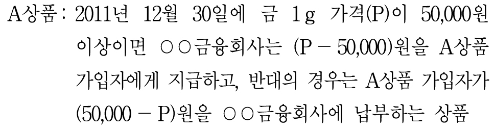 3번. 오늘 B상품에 가입하면서 금 1g을 사고 2011년 12월 30일에 이를 판매한다면, 금 시세와 무관하게 50,000원을 받을 수 있다.