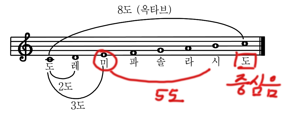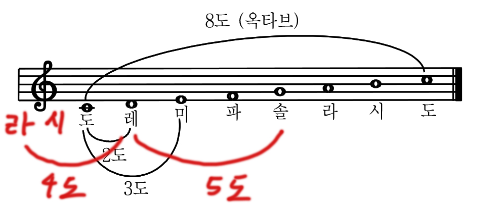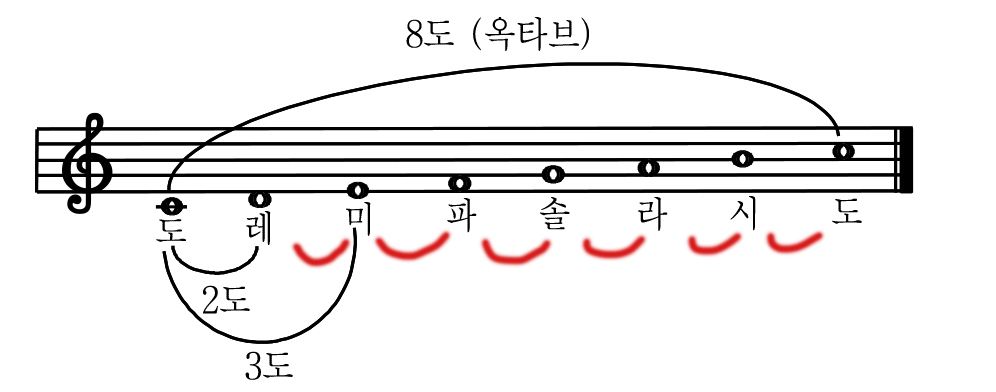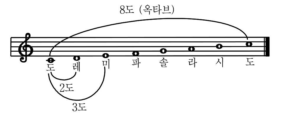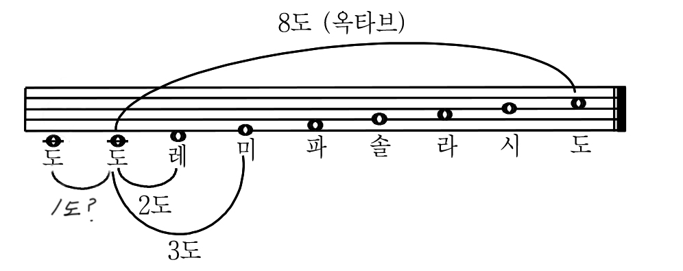근데 '동일한 음 간의 간격'이라고 했으니까 이렇게 도-도 간의 간격이 1도가 되는 것으로 보인다.