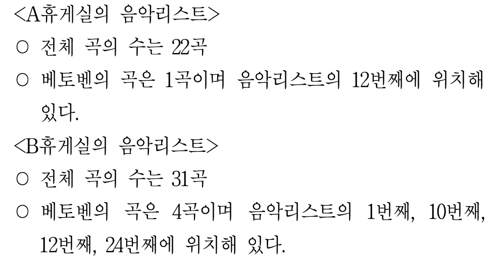 A, B 휴게실 모두 10시에 곡을 차례대로 튼다고 한다.