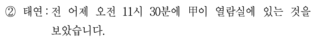 12시 30분 해당 없다. 그러면 갑은 열람실에 있어야 한다.