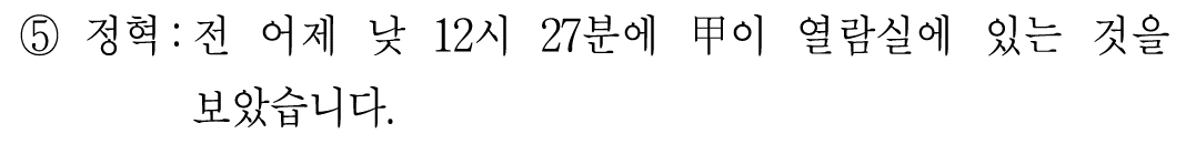 12시 30분 해당 없다. 그러면 갑은 열람실에 있어야 한다.