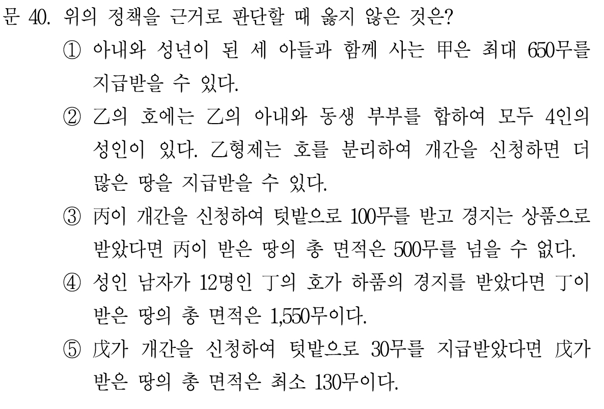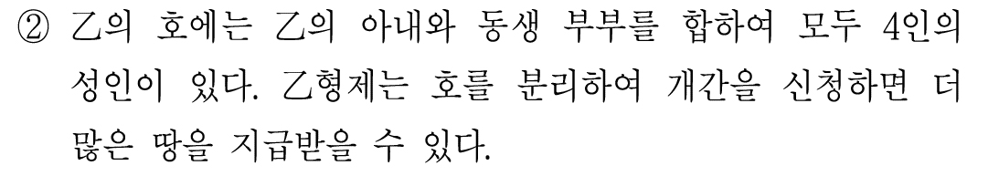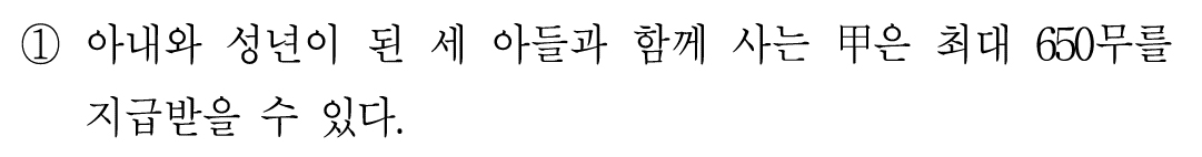 세 아들이 있고, 갑도 있으니까 성인 남성 4명 아닌가? 그렇게 되면 최대 850무를 받을 수 있다고 생각할 수 있지만