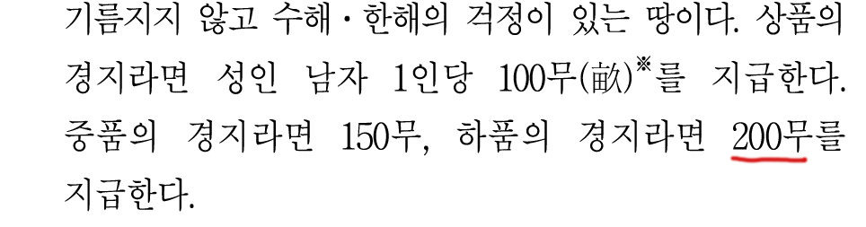 경지는 하품으로 받으면 200무를 받을 수 있다.