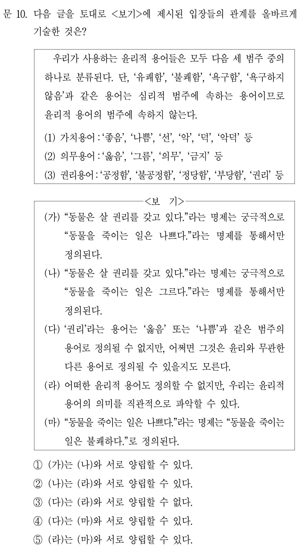 5번. (라)는 (마)와 서로 양립할 수 있다.