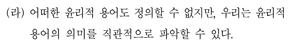 (라)는 윤리적 용어를 정의할 수 없다고 한다.