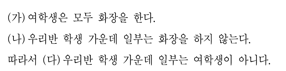 '화장을 하는 학생은 모두 여학생이다'가 들어가야 한다.
