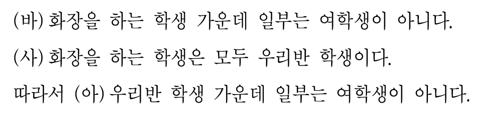 (사)와 (자)가 참이라는 것으로부터 (차)가 참이라는 것도 알 수 있다고 하므로