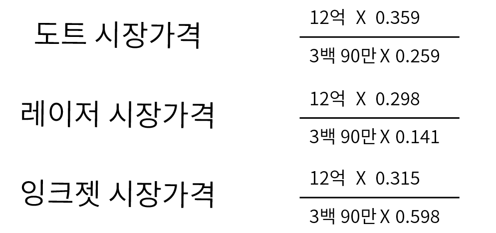 근데 도트, 잉크젯, 레이저 프린터의 시장가격을 알려면