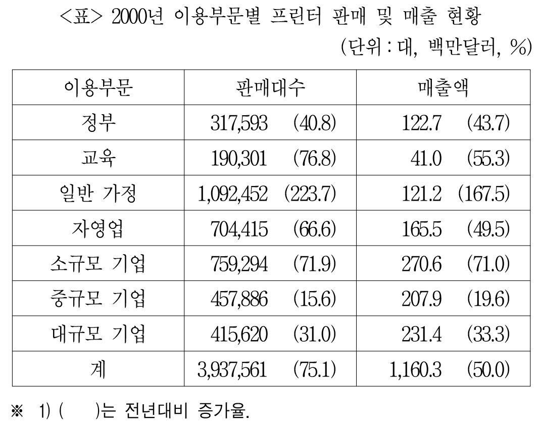 일단 2000년에는 잉크젯 프린터 판매대수가