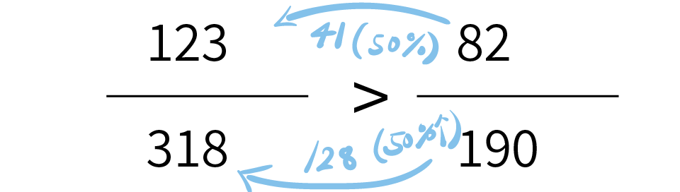 여기서 곱해지는 분모의 크기와 분자의 크기에 따라 순서가 정해진다.