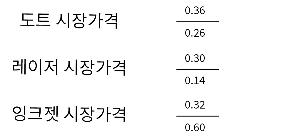 근데 도트, 잉크젯, 레이저 프린터의 시장가격을 알려면