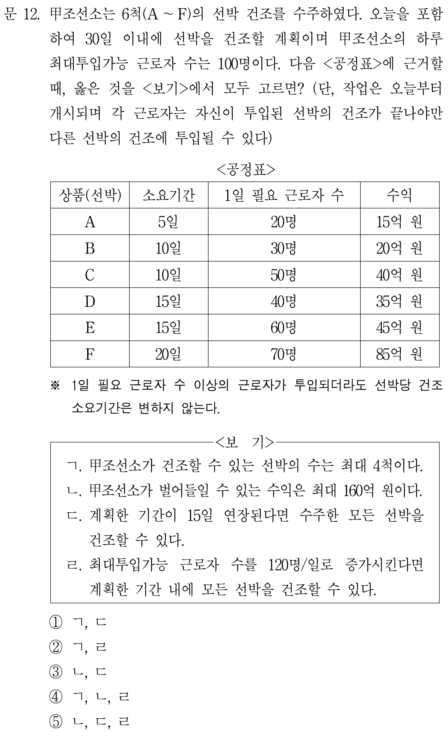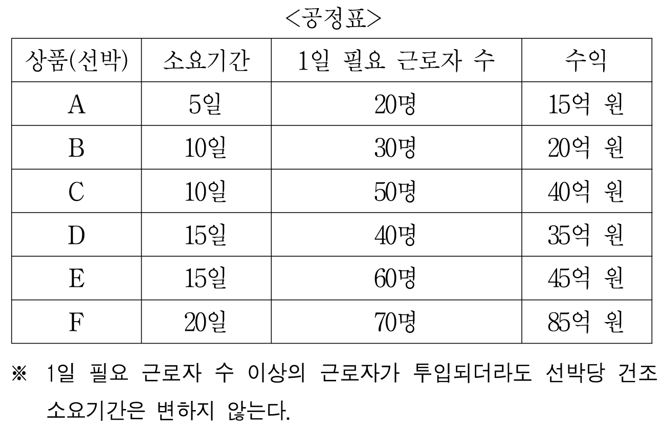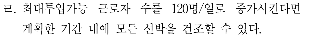 그렇다면 건조할 수 있는 최대 선박 수는 5척이 된다.