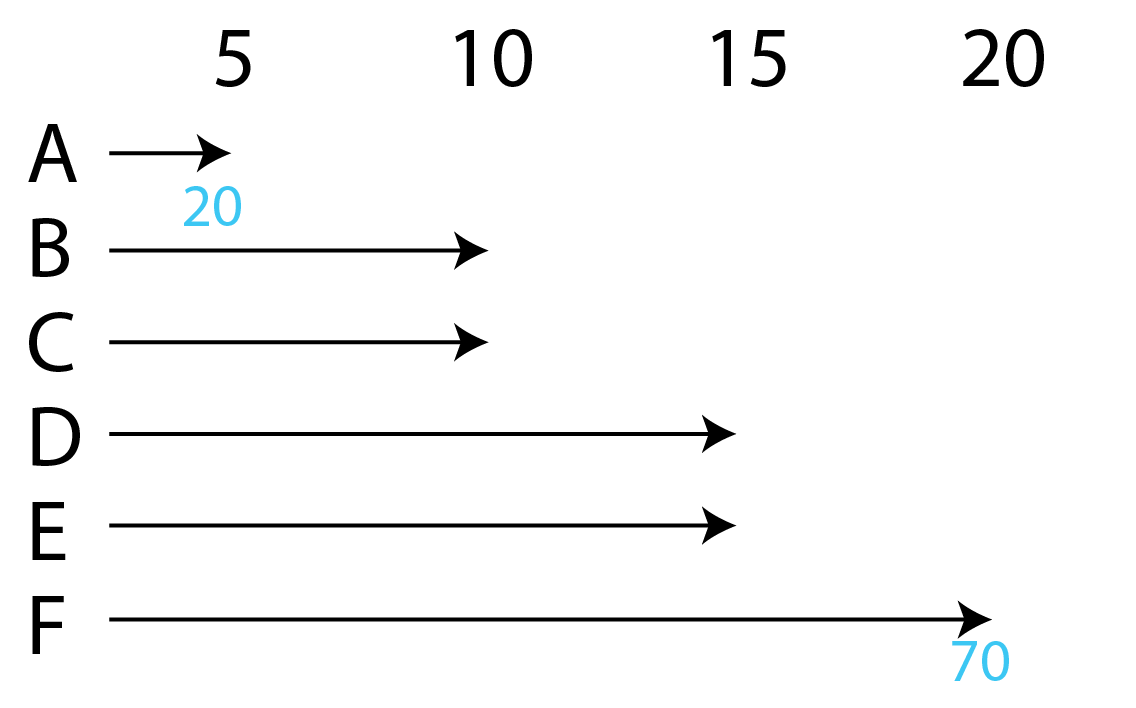 일단 가장 기간이 짧은 A에 20명을 투입하면