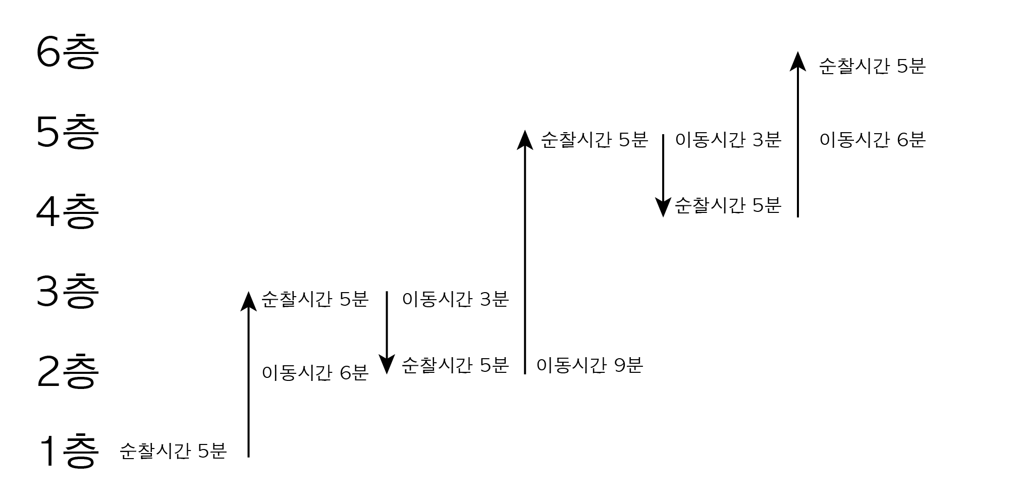 1층에서 6층까지 갔다가 다시 1층까지 가는 시간을 구하는 문제다.