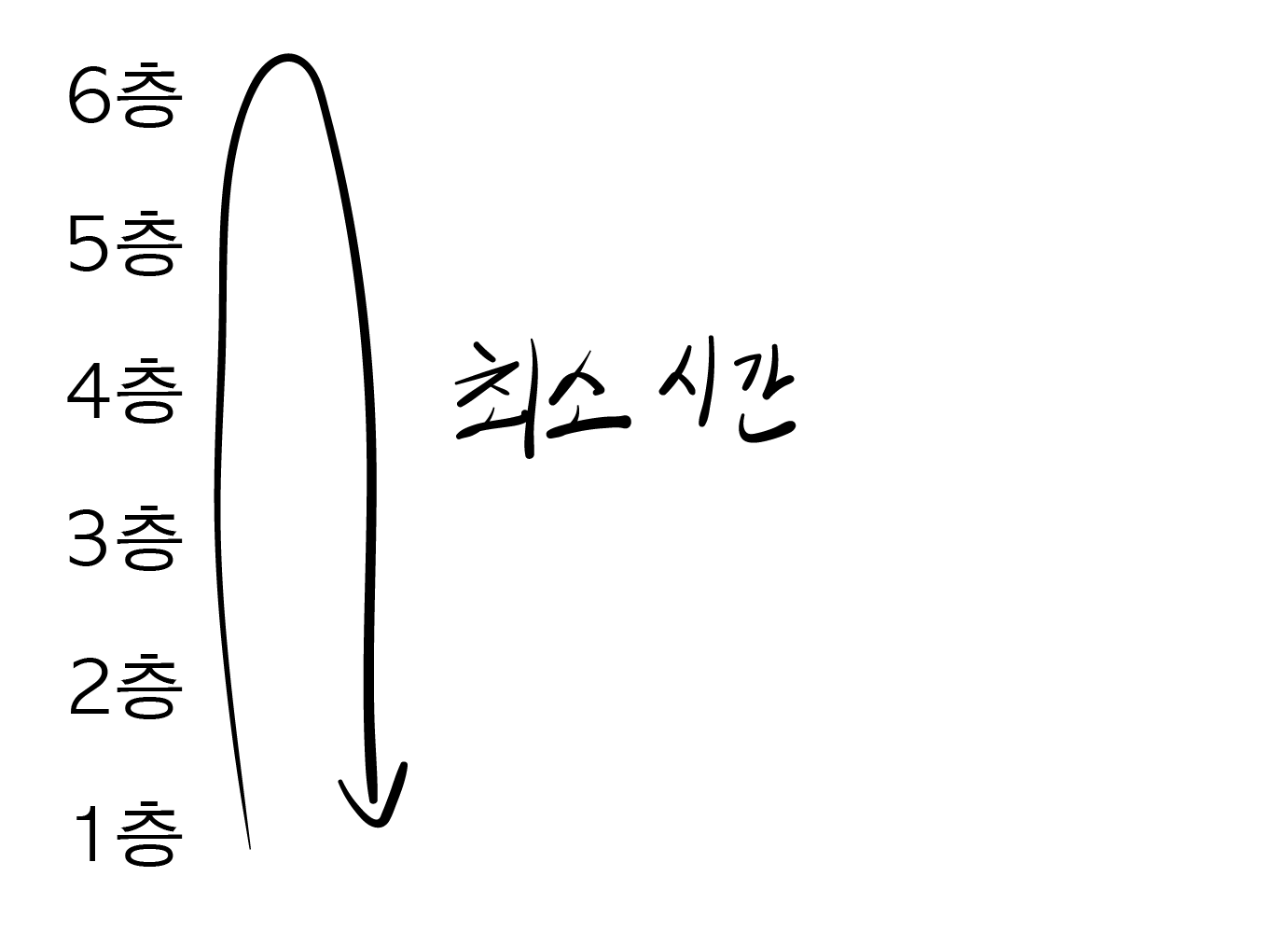 1층에서 6층까지 갔다가 다시 1층까지 가는 시간을 구하는 문제다.