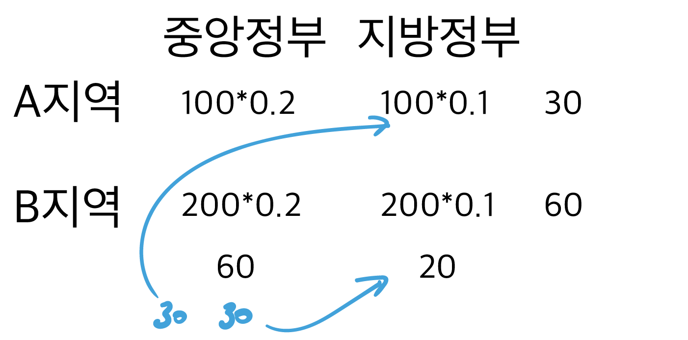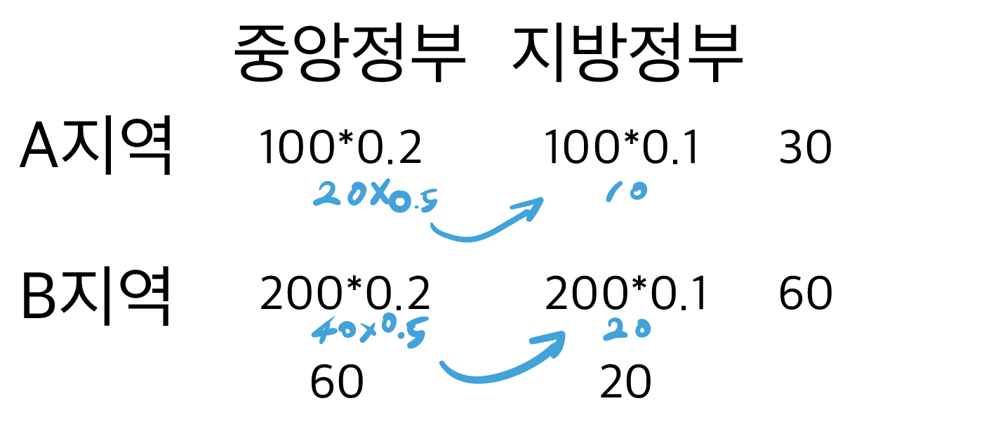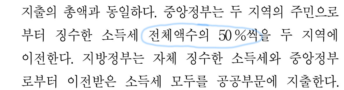 '중앙정부가 각 지역에서 징수한 금액의 50%를 지방전부에 이전한다'고 오해할 수 있다.
