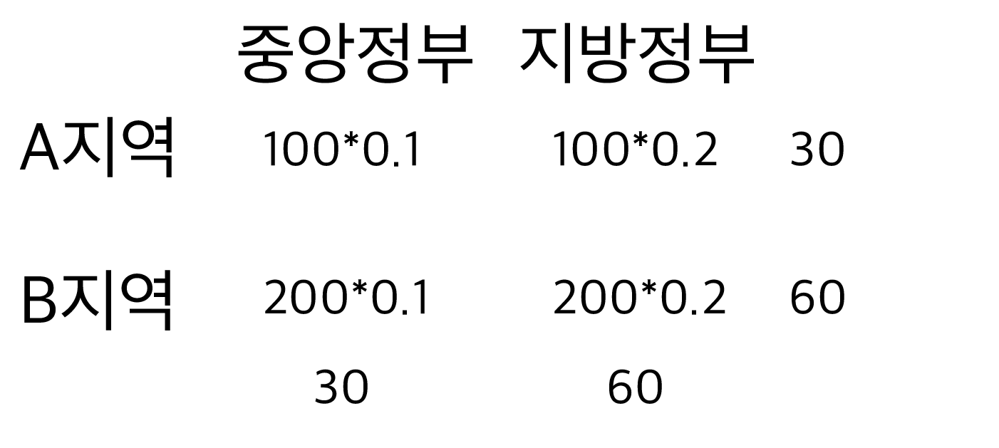 A지역 소득이 $100고 B지역 소득이 $200이다.