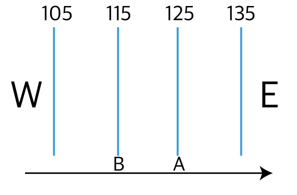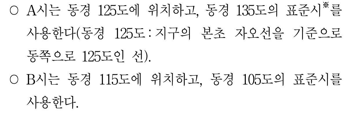A지역하고 B지역이 동일한 경도에 위치한 것이 아니다.