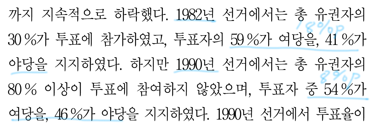 1986년 정보가 없기 때문에 매 선거마다 지속적으로 줄어들었다고 볼 수는 없는 것이다.