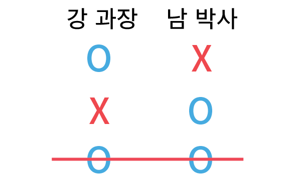 강 과장에게만 책임이 있거나 남 박사에게만 책임이 있는 경우로만 나뉘게 된다.