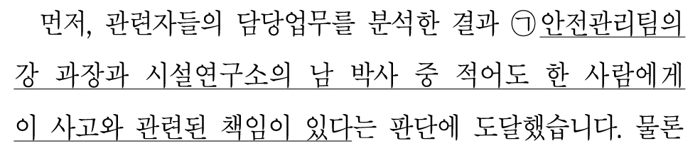 ㅁ 만일 강 과장이 이 사고와 관련된 책임이 있다면 남 박사에게도 책임이 있을 수밖에 없다