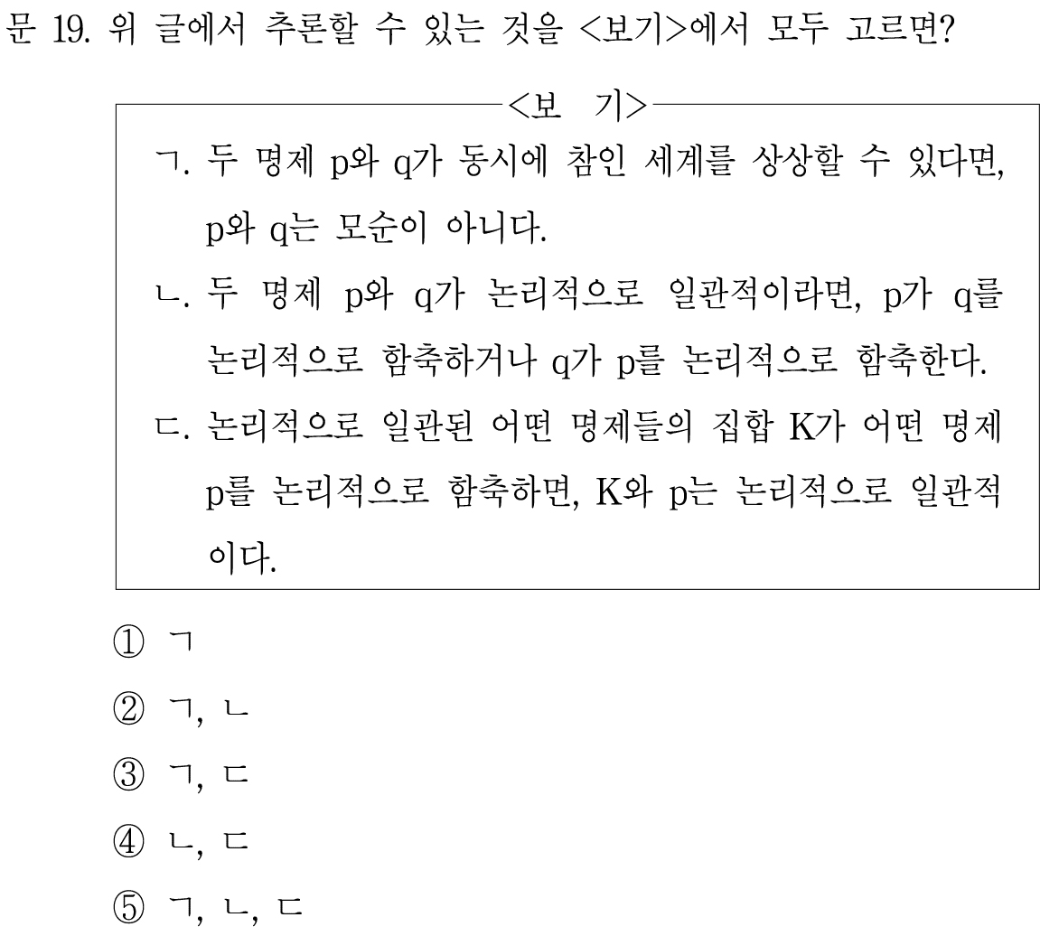 논리적으로 일관적인 명제 (가)와 (나)를 생각해보자.