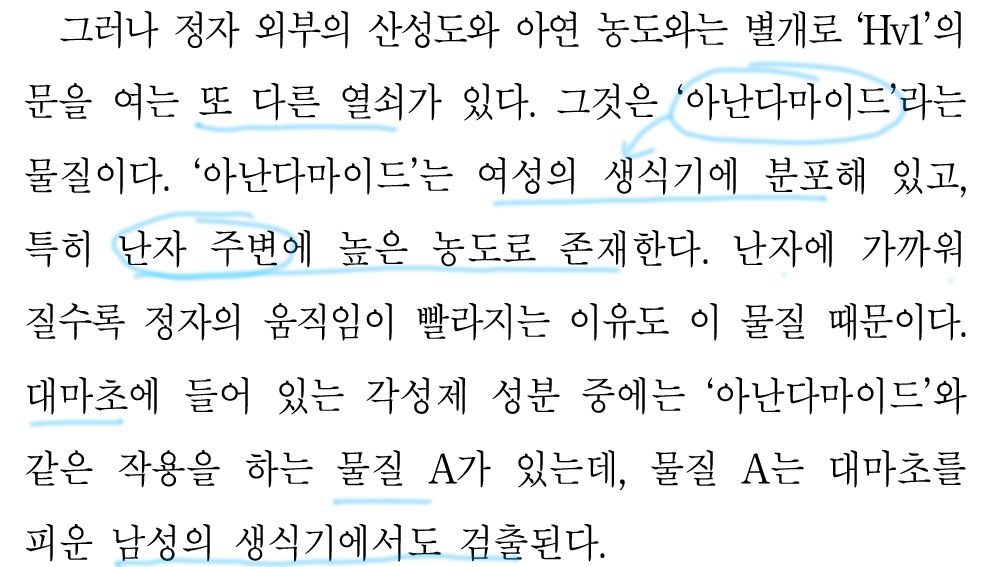 맞다. '아난다마이드'는 수소이온의 통로 역할을 하는 Hv1을 열어주는데,