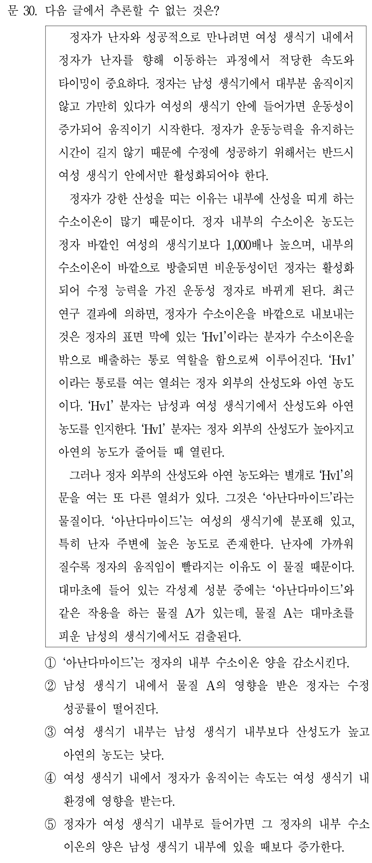 3번에서 봤듯이, 여성 생식기 내부의 산성도는 남성의 것보다 높고, 아연 농도는 낮기 때문에 Hv1 통로가 열림으로써 정자 내부 수소이온이 방출된다.