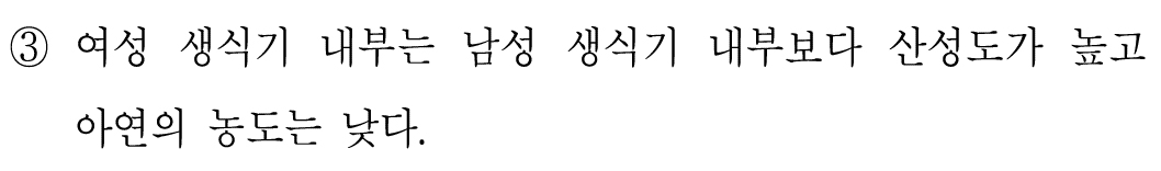 여성의 생식기 내부가 남성 생식기 내부보다 산성도가 높고 아연의 농도가 낮다고 할 수 있다.