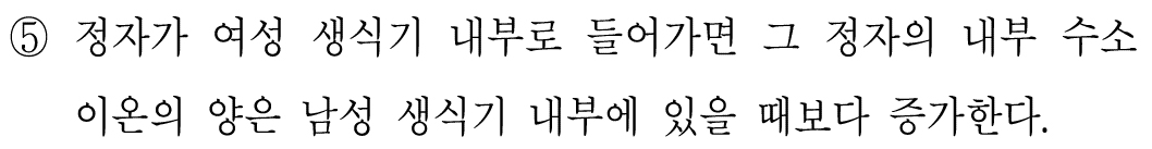 정자 내부에 수소이온이 많기 때문에 정자는 강한 산성을 띤다고 한다.