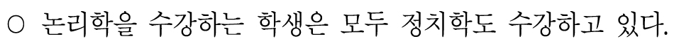두번째 행을 보면 민주가 논리학을 수강하지 않았다는 조건 하에서는