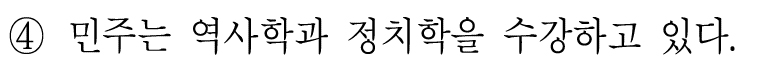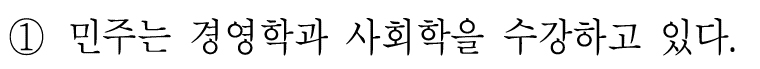 선지에 그러니까 '민주는 정치학과 사회학을 수강하고 있다.'는 것이 있으면 답인 것이다.