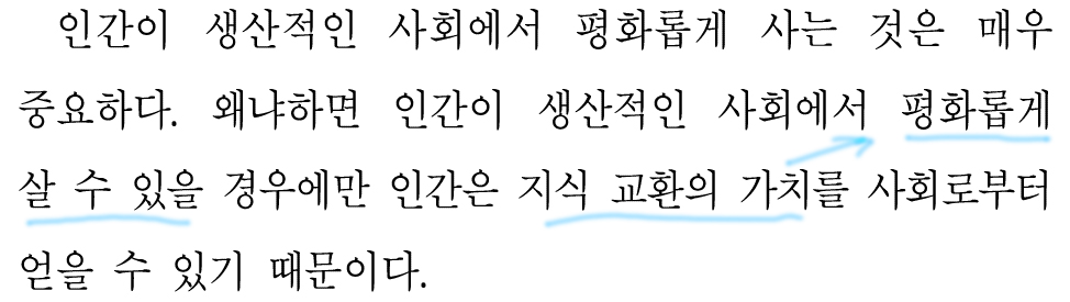 평화롭게 살 수 X -> 지식 교환의 가치 얻음 X