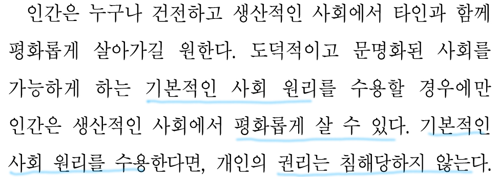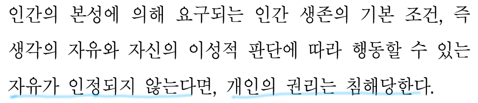 기본적인 사회 원리 수용 -> 개인의 권리 침해 X